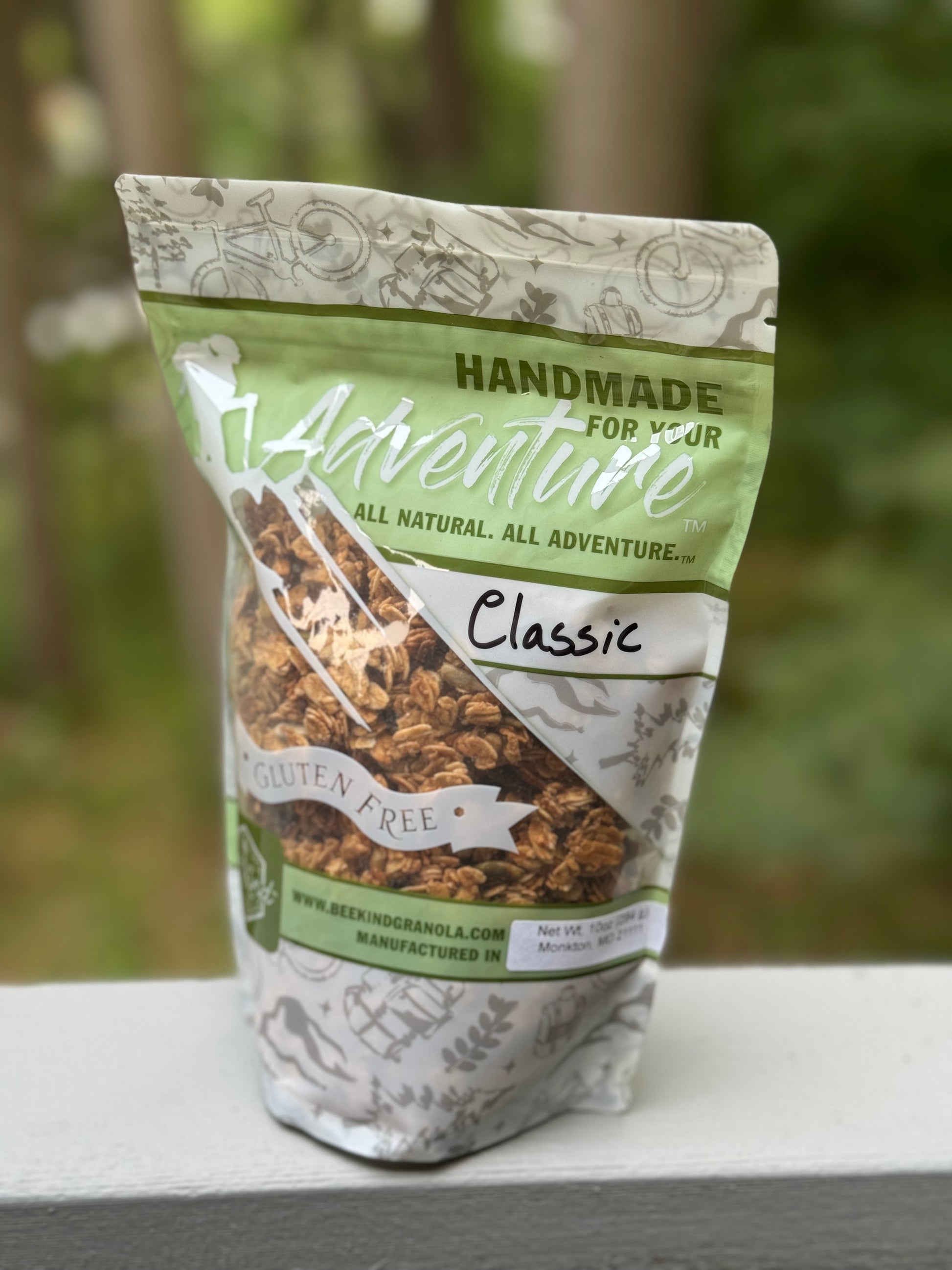My classic granola is the first granola I ever created, it is a simple nut free mix slightly sweetened with honey and cinnamon.