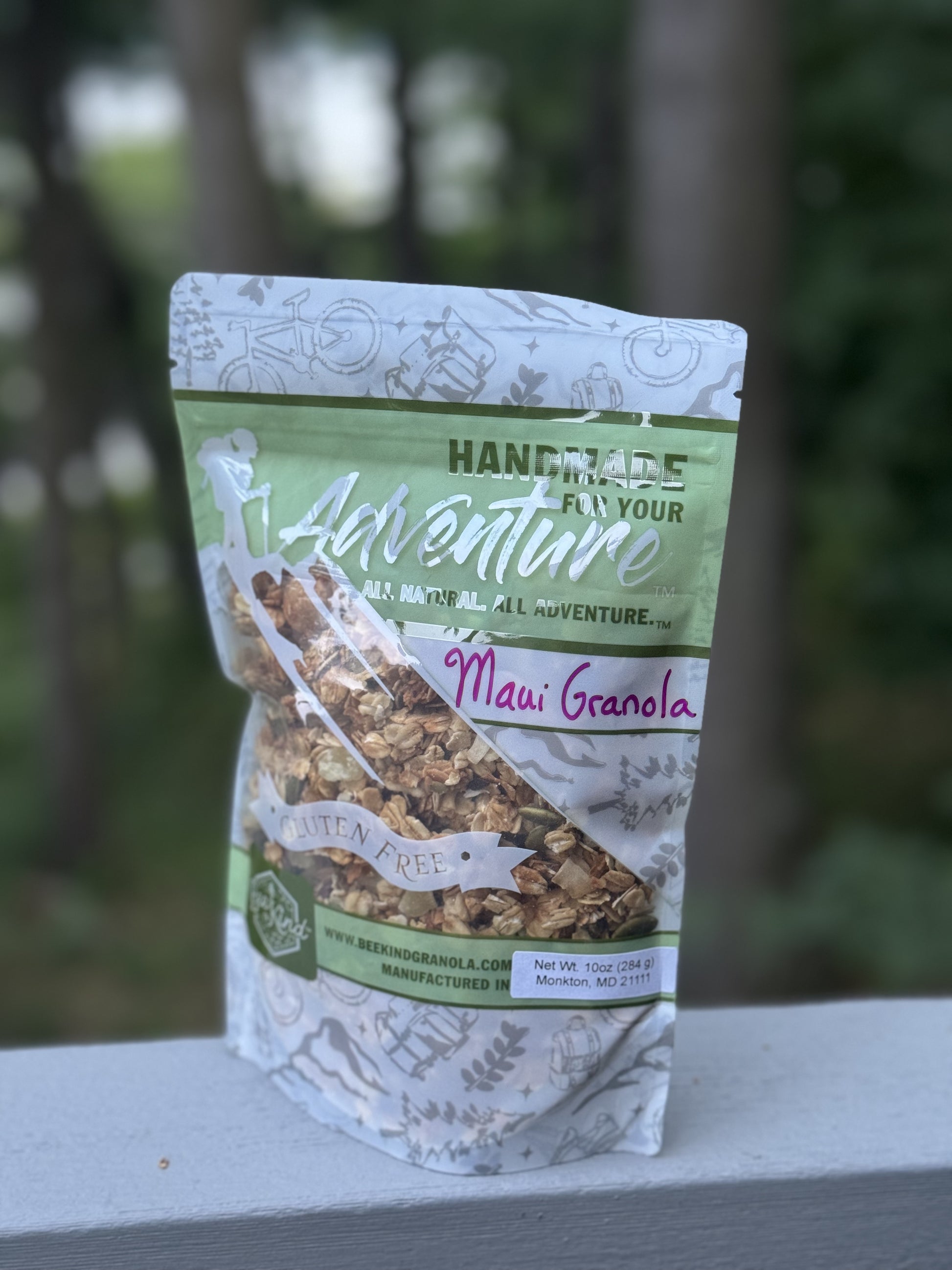 After a family trip to Maui I brought together some of my favorite foods from the trip- honey of course, pineapple, macadamia nuts, coconut and cocoa nibs. This granola is so good right out of the bag, I love it on an açaí bowl a with fresh pineapple and bananas on top too!